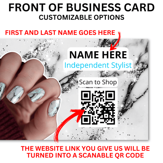 Marble White, Black, and Silver Nail Stylist Personalized Business Cards