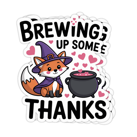 Cute Fox Witch Hat and Hearts Halloween Thanks Sticker