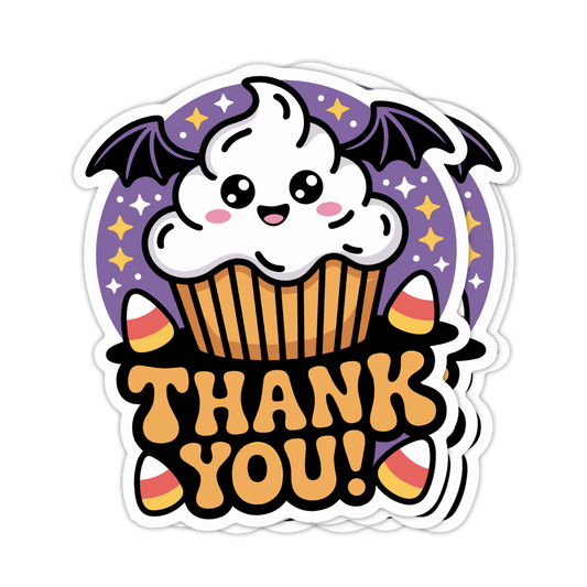 Cute Halloween Cupcake Candy Corn Thank You Sticker
