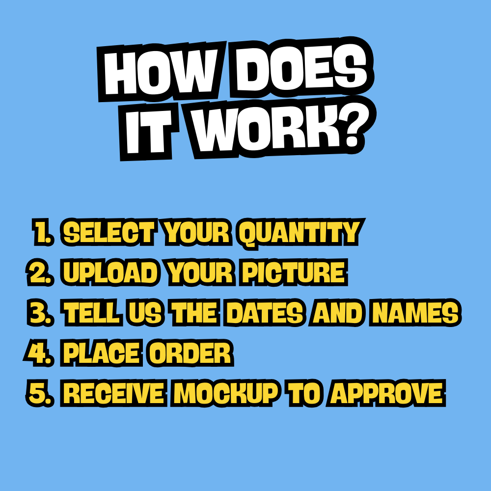 Each tattoo will be around 2 inches and will come with application instructions on how to put them on. (It takes less than 30 seconds and is very simple)