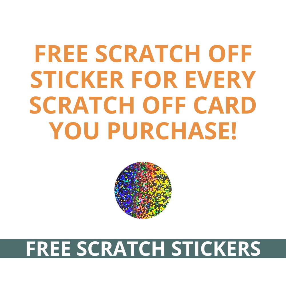 For example, if you order 100 of these, you will get 100 cards, and 100 scratch-off stickers!