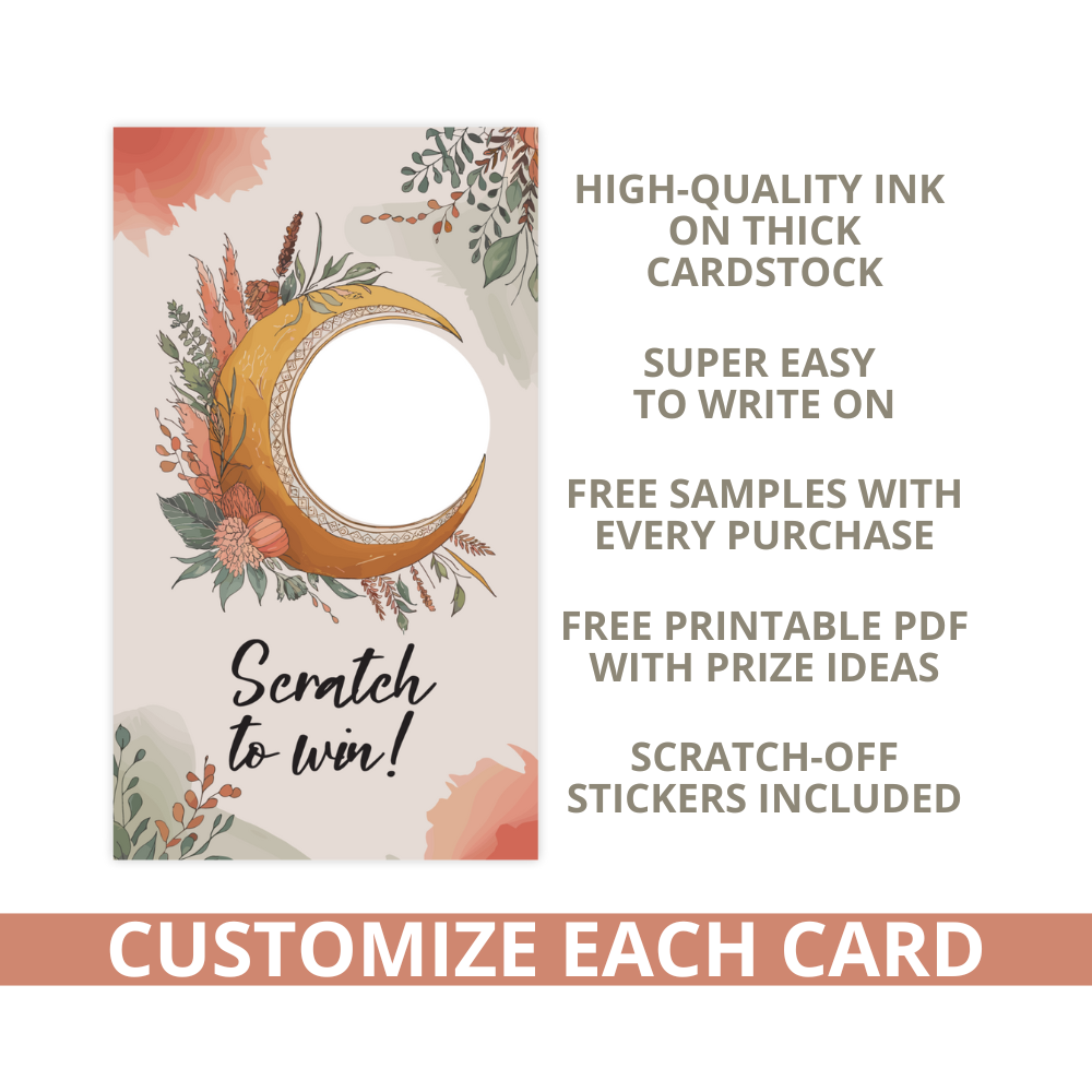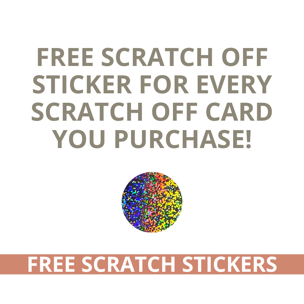 For example, if you order 100 of these, you will get 100 cards, and 100 scratch-off stickers!