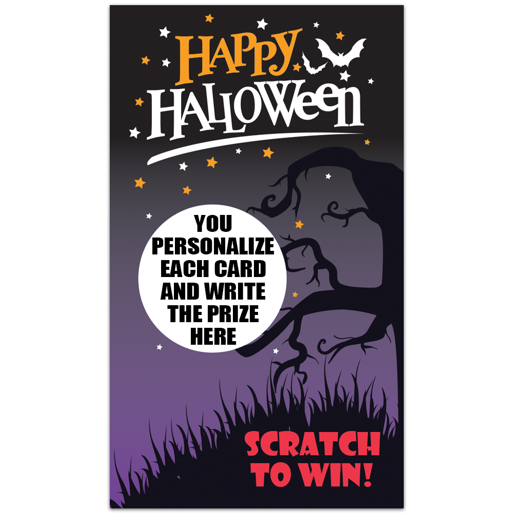 Happy Halloween Scratch to Win Spooky Tree Scratch Off Card